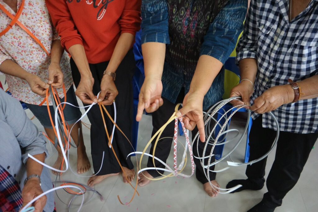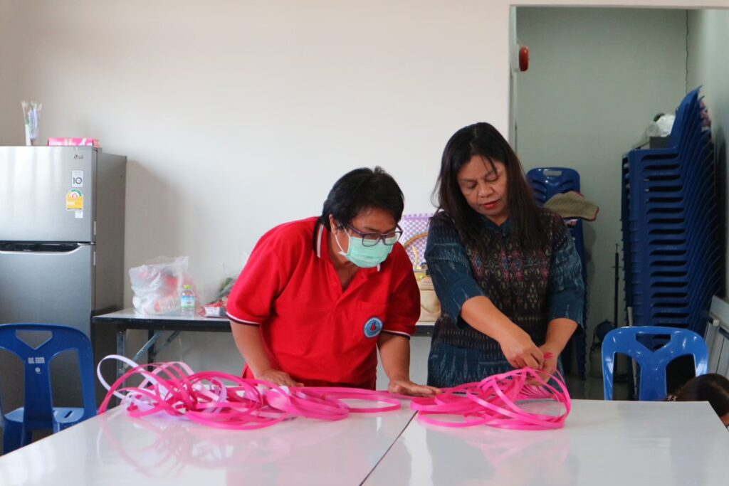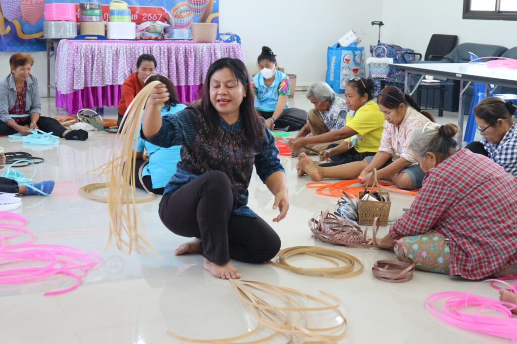 โดยได้เชิญวิทยากรในชุมชนที่มีความชำนาญด้านหัตถกรรม เพื่อเสริมสร้างรายได้ให้ตนเองและครอบครัว