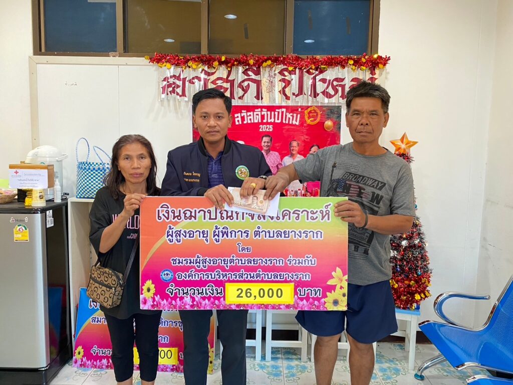 เมื่อวันที่ 24 ธันวาคม 2567 นายกันตภณ ใจหาญ นายกองค์การบริหารส่วนตำบลยางราก ในฐานะประธานกองทุนสวัสดิการชุมชนตำบลยางราก มอบเงินสงเคราะห์ศพจำนวน 10,000 บาท และเงินกองทุนผู้สูงอายุตำบลยางราก จำนวน 26,000.-บาท ให้กับญาติผู้สูงอายุที่เสียชีวิต รายนางแย้ม กลมค้างพลู หมู่ที่ 12 ขอแสดงความเสียใจกับผู้สูงอายที่เสียชีวิต ด้วยความห่วงใยจาก องค์การบริหารส่วนตำบลยางราก
